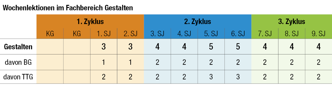 Hinweise zur Lektionentafel Gestalten: