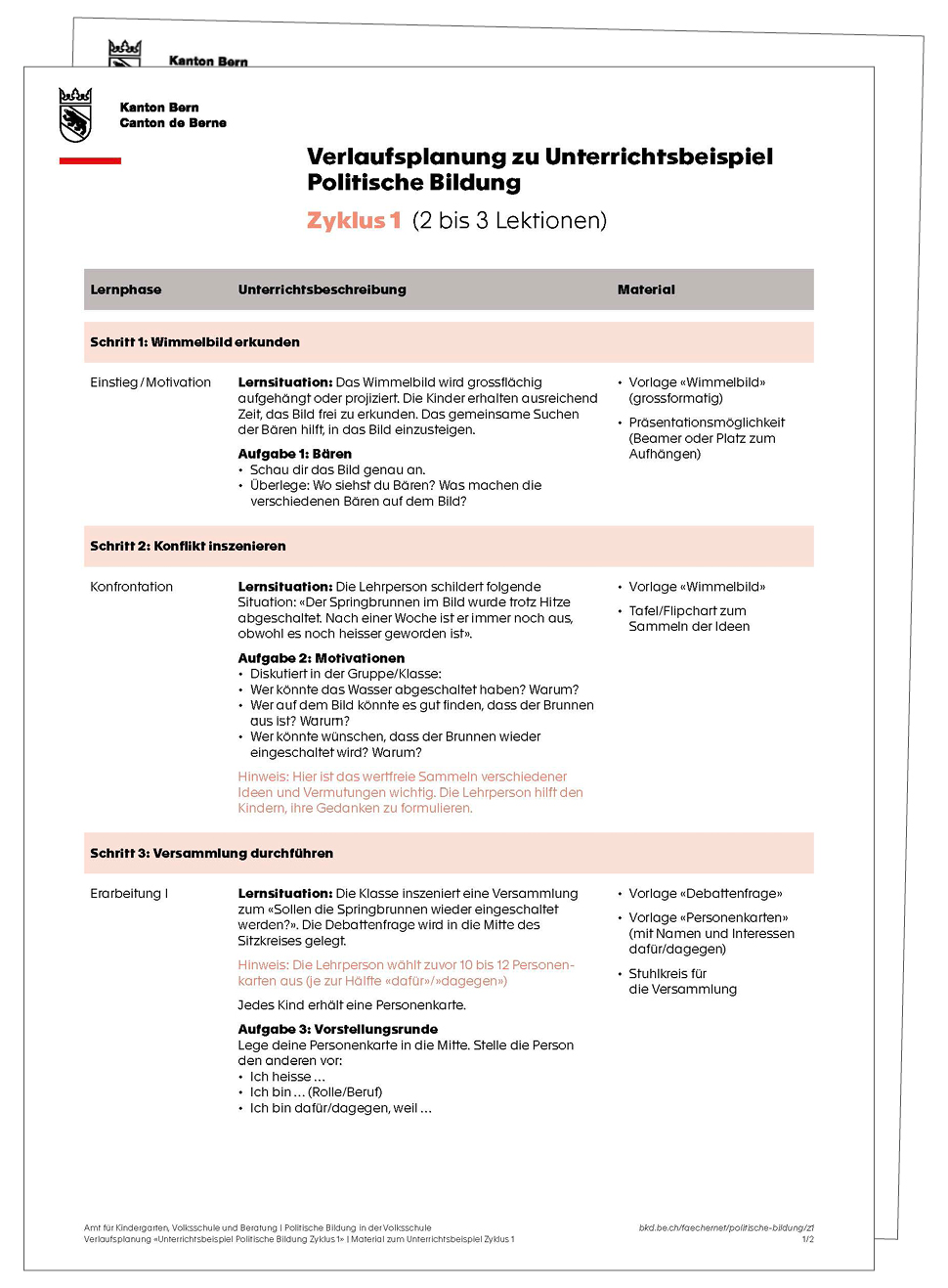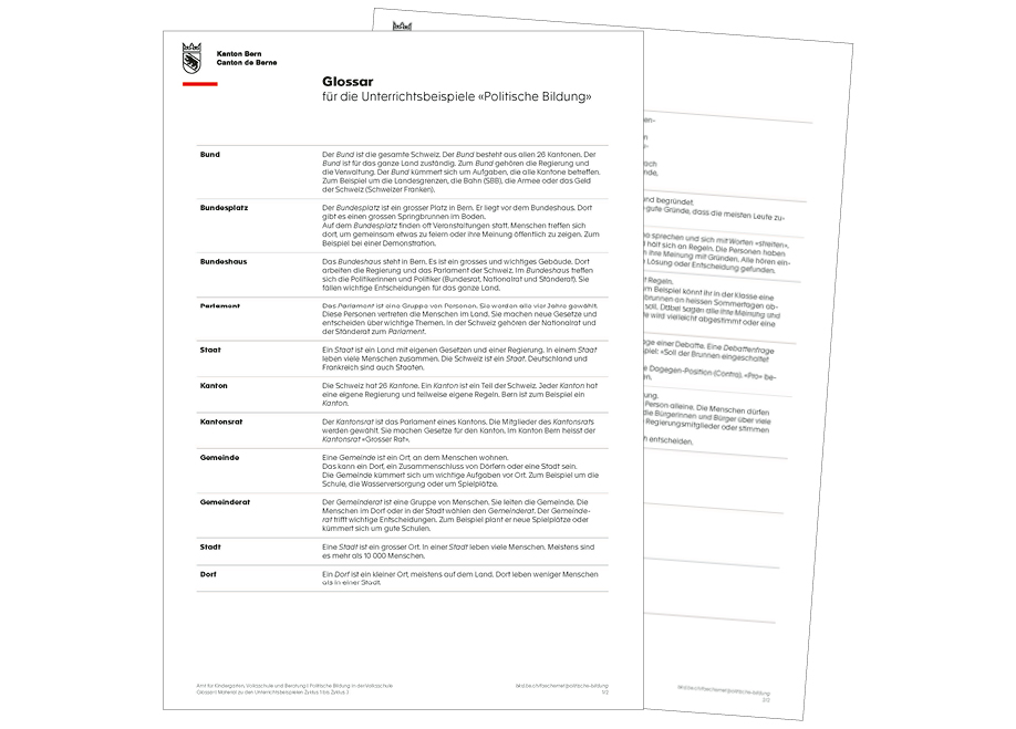 → Verlaufsplanung «Unterrichtsbeispiel Politische Bildung Zyklus 1» herunterladen